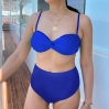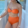 Set comes with 1 bandeau top, 1 high waist bikini bottom, and detachable straps.